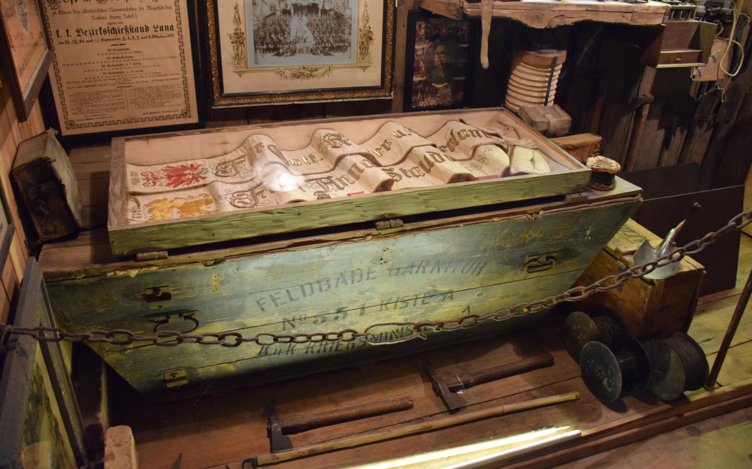 Mitte Dezember stand ein weiterer, besonders lehrreicher Vormittag auf dem Programm. Auf Einladung von Alexander Schwabl trafen sich die Jungschützen beim Kleinen Museum in Lana. Bereits beim Betreten war spürbar, mit wie viel Leidenschaft und Hingabe dieses Museum geführt wird. Alexander gewährte spannende Einblicke in seine private Sammlung – von Ausrüstungsgegenständen und Uniformen über Essensdosen bis hin zu vielen weiteren Zeitzeugen vergangener Tage.