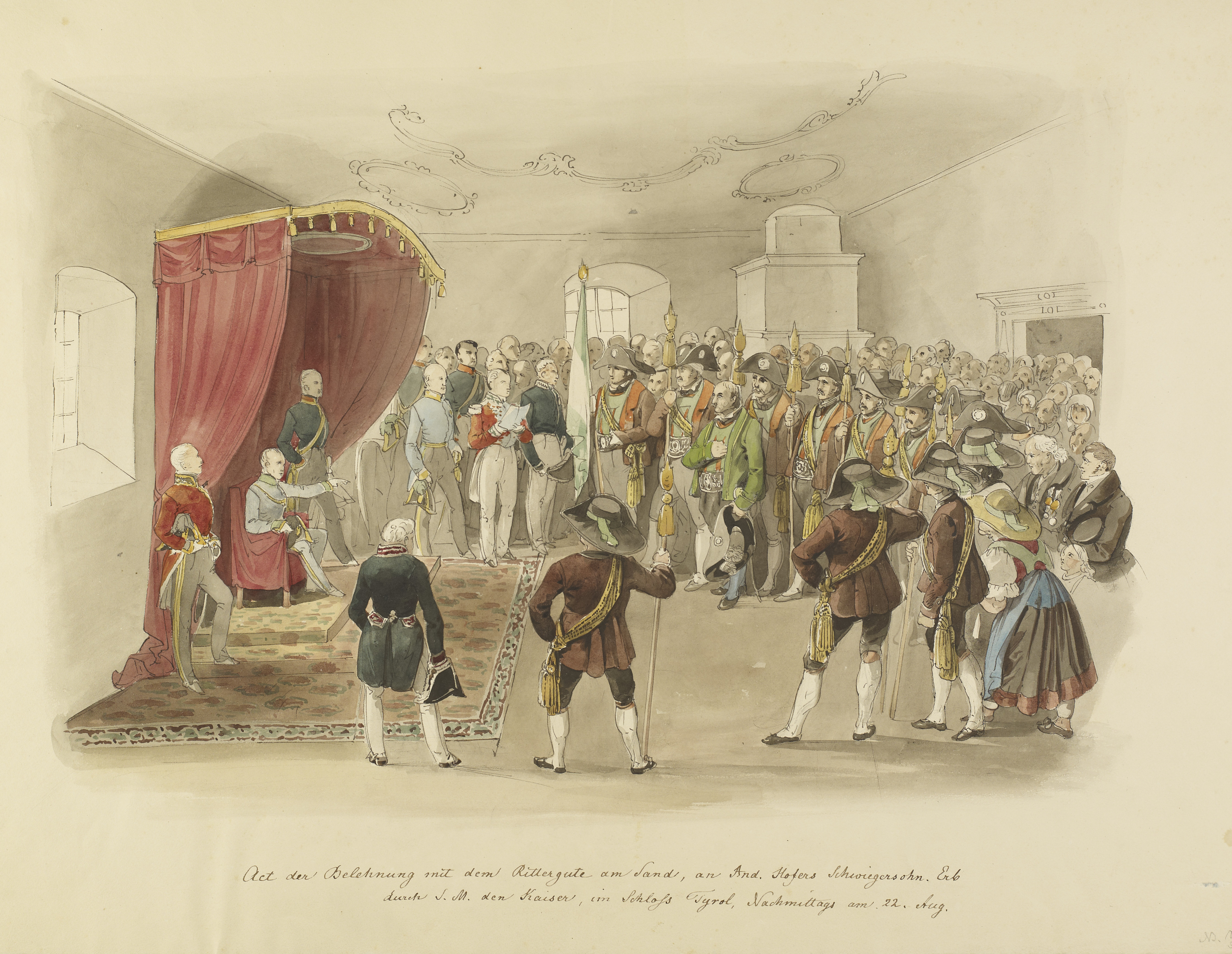 1838 kam am 12. August Kaiser Ferdinand I. zur Erbhuldigung nach Innsbruck. Dabei marschierten 7000 Schützen, darunter 360 Veteranen von 1809 aus allen Landesteilen auf.