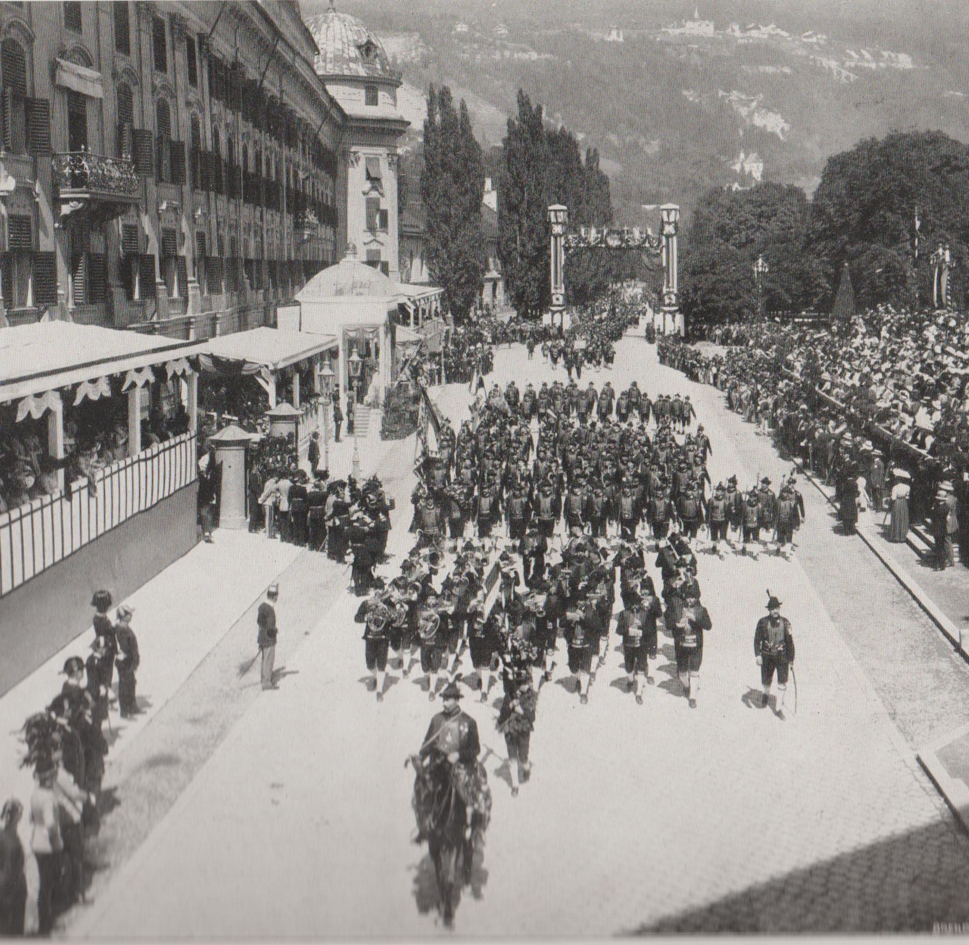 1909 fand in Innsbruck anlässlich des 100-Jahr-Gedenkens an den Freiheitskampf von 1809 das letzte große Festschießen statt. Beim großen Festumzug paradierten 33.000 Schützen am 29. August vor dem Kaiser. Das neu gebildete Zillertaler Schützenregiment und die Burggräfler fielen dabei besonders auf. Das größte Kontingent mit 220 Mann stellte Meran unter Hptm. Sebastian Huber gemeinsam mit der Algunder Musikkapelle.