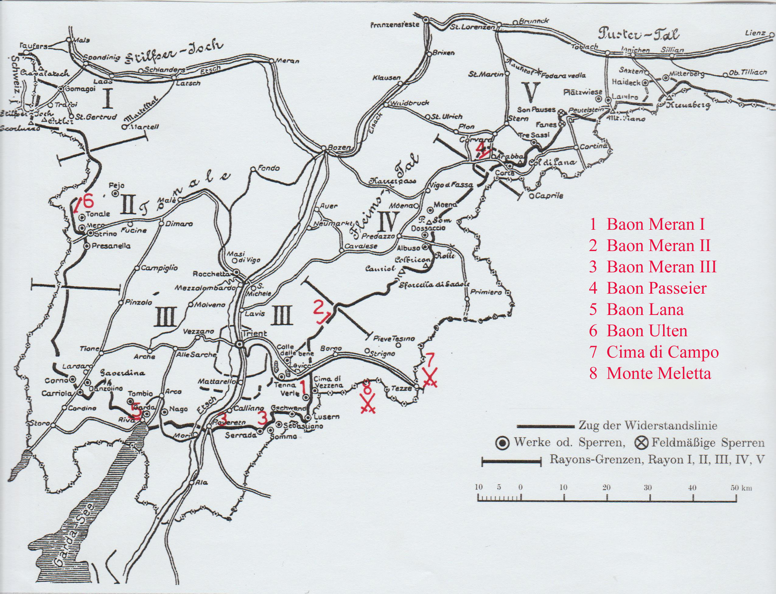 Das Bataillon Meran I bezog am 22. Mai im Bereich Vezzena-Pass, Werk Verle und am Bassano Stellung. In seinen Reihen diente auch der 76jährige Standschütze Michael Senn, nach alter Tradition (Meraner Vorstreitrecht) eröffnete er am 24. Mai auf der Hochfläche von Lavarone das Feuer.