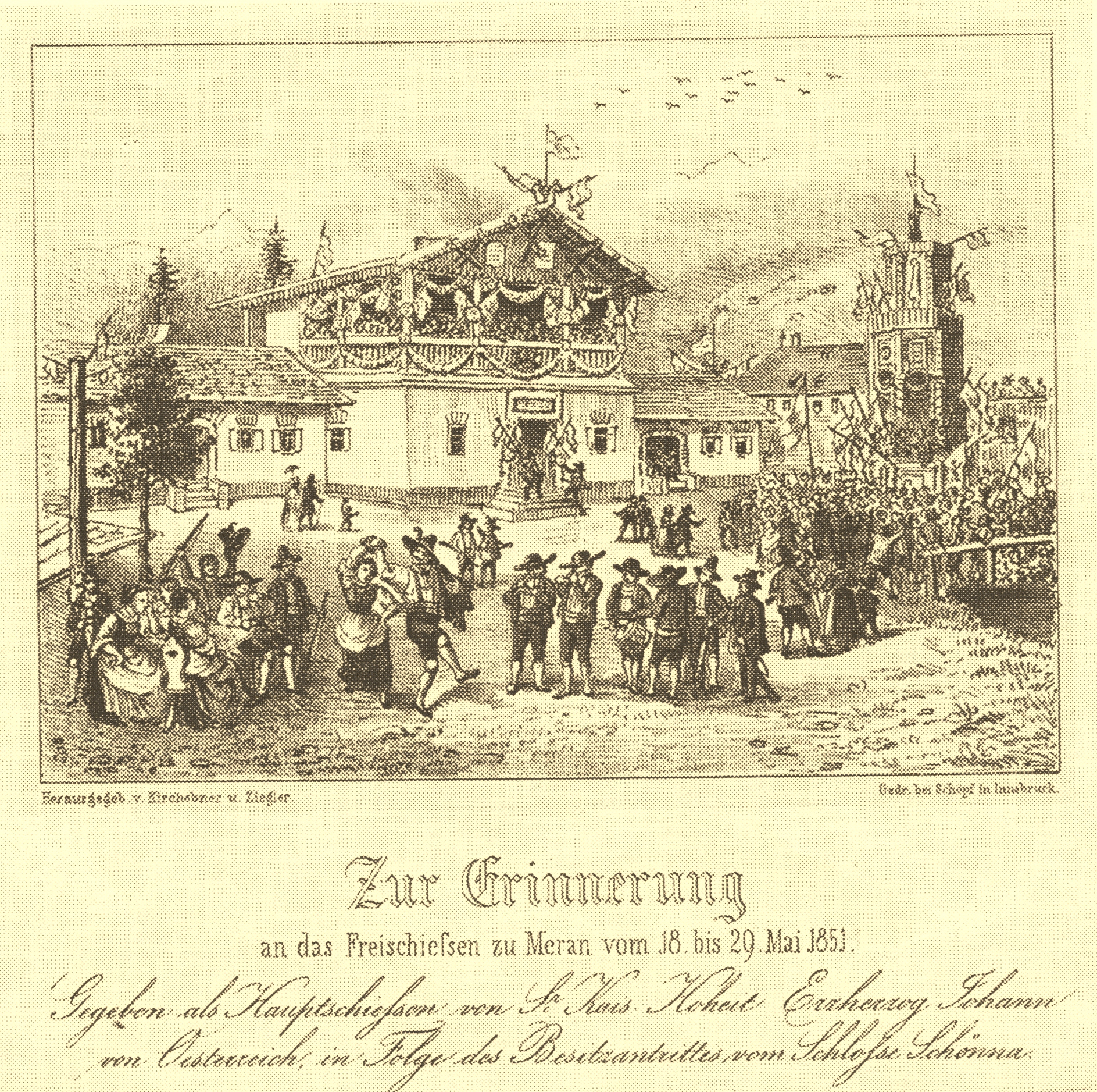1850 fand am 16. Mai die feierliche Grundsteinlegung für den neuen Meraner Schießstand durch Erzherzog Heinrich statt.