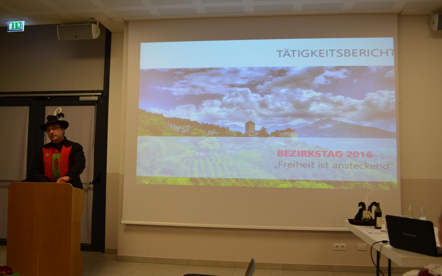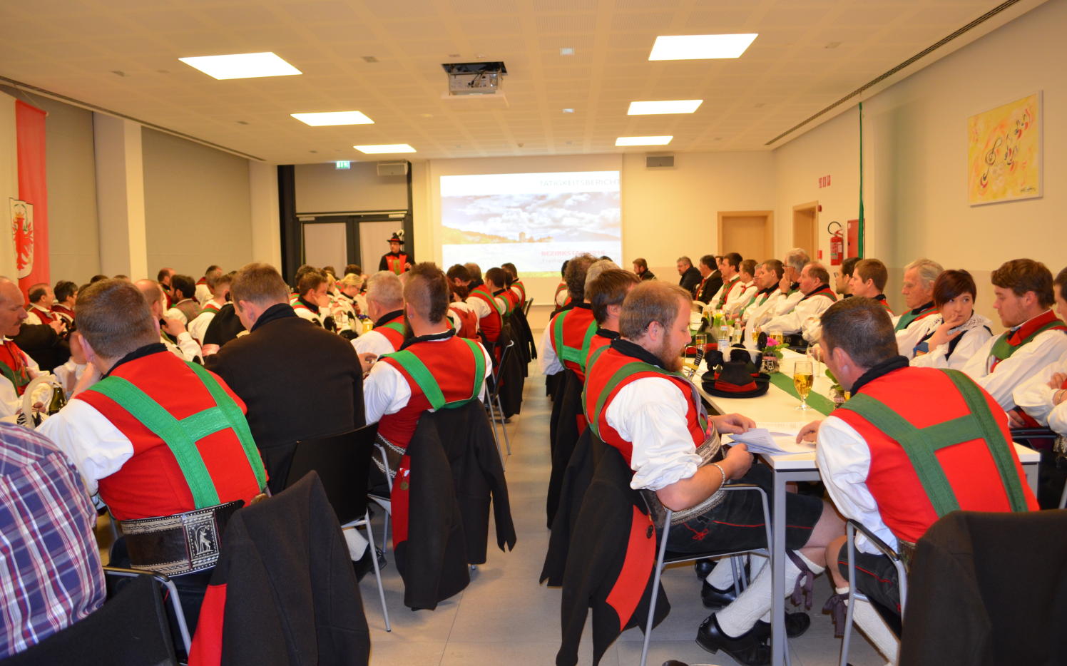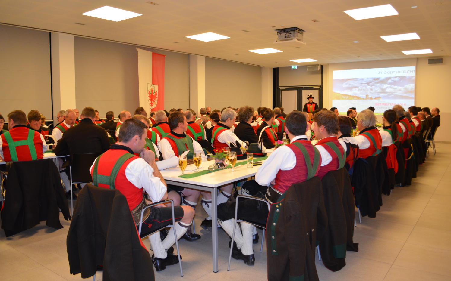 Mit Genugtuung konnte die Bezirksleitung unter der Führung von Major Andreas Leiter Reber auf das vergangene Jahr zurückblicken: Zahlreich waren die Projekte, welche in Erinnerung an die Tiroler Standschützen und die Kriegsfront von 1915 durchgeführt wurden. Über die Gedenkfeier am Meraner Soldatenfriedhof, an der auch Karl von Habsburg teilgenommen hat und die Errichtung von 12 Gedenkkreuzen an der ehemaligen Tiroler Frontlinie, wurde ein Fotobericht gezeigt. Auch die Gedenkmessen für Georg Klotz, Franz Höfler und Sepp Kerschbaumer fanden stets unter einer starken Beteiligung der Burggräfler Kompanien statt. Neben Schießbewerben auf Bezirks- und Landesebene, fanden im Rahmen der Jugendarbeit unter anderem eine Sommerolympiade im Passeiertal und ein Herbstausflug zum Kloster Marienberg im Vinschgau statt. Erstmals wurde beim zweitägigen Bezirkslehrgang für Neuschützen auch ein Aufbau- bzw. Weiterbildungskurs für Mitglieder angeboten. Die Bezirksmarketenderin Angelika Haller verwies auf die verschiedenen Tätigkeiten der insgesamt 131 Marketenderinnen und zeigte sich erfreut, dass die Mädchen und Frauen nicht nur in Tracht eine gute Figur machen, sondern sich in verschiedenen Arbeitsgruppen und Bezirksgremien aktiv einbringen und auch zu politischen Themen ihre Positionen vertreten.