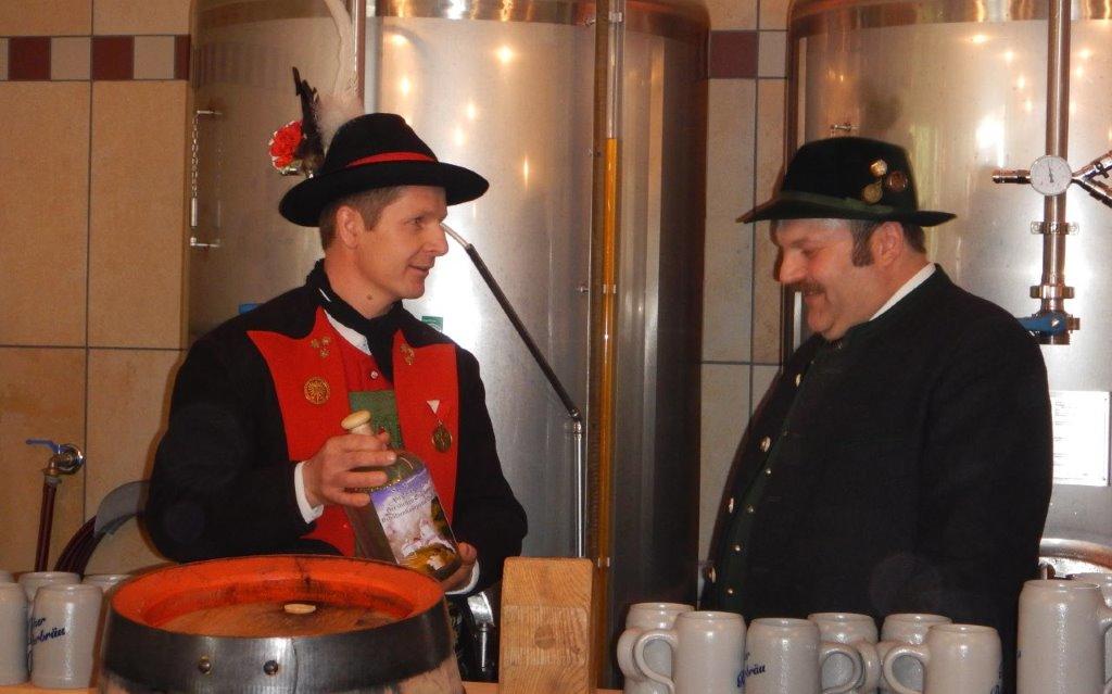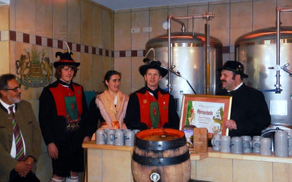 Aus diesem Grund fuhr eine Abordnung zur Eröffnung der Brauerei Binder Bräu nach Bad Tölz und übereichten ihm hochprozentige Grüße und die Urkunde über die Ehrenmitgliedschaft.