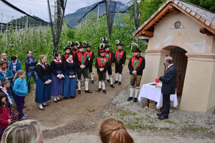 Am St. Georgstag weihte Altpfarrer P. Oswald Vienna (OT), gemeinsam mit dem Schützenzug Völlan und zahlreichen weiteren Anwesenden, den restaurierten „Aichholzer-Roemen-Bildstock“ in Völlan ein.