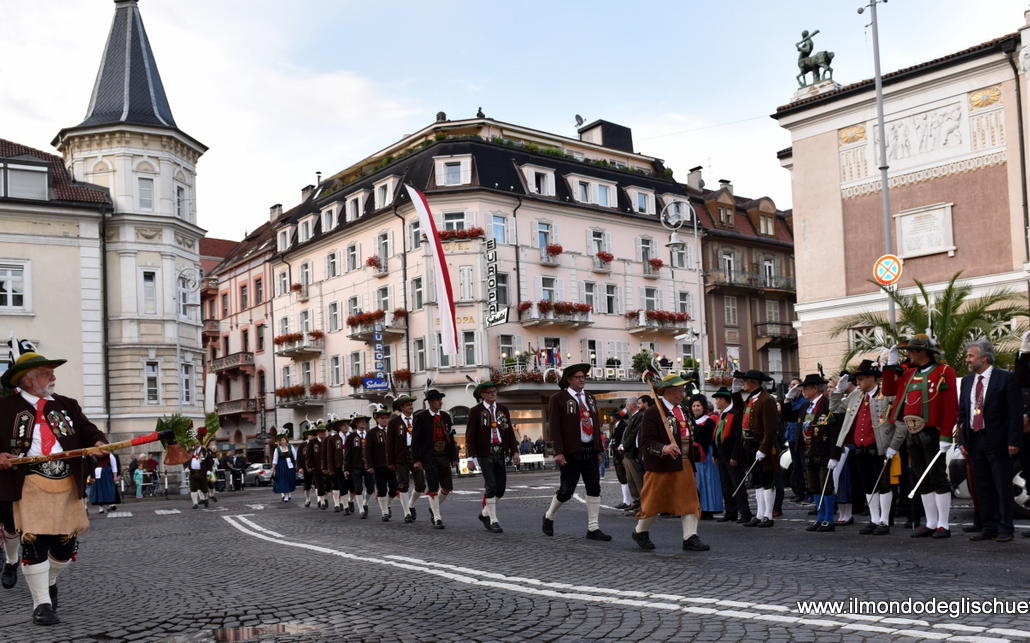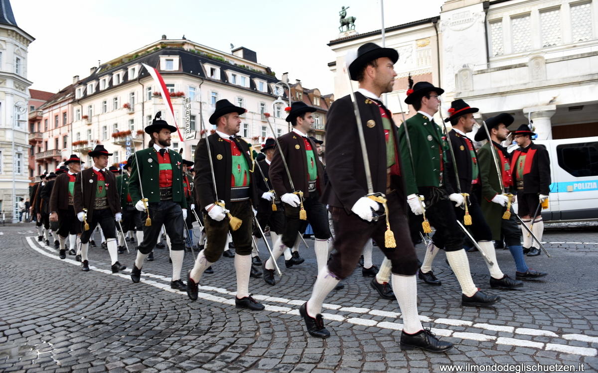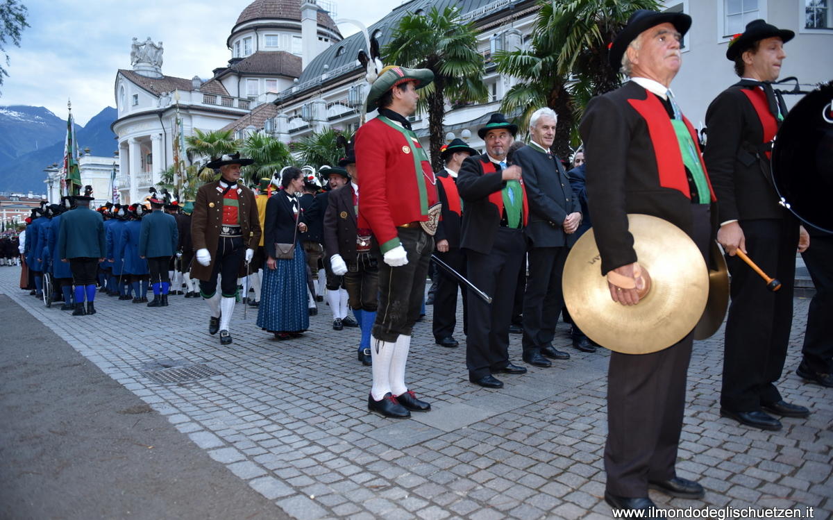 MERAN Petrus meinte es am vergangenen Samstag gut mit den Schützenkompanien des Bezirks Burggrafenamt-Passeier: Pünktlich zum abendlichen Festumzug hat es aufgehört zu regnen und auf der Kurpromenade konnte der von Florian Pedarnig – als Festmusik der Schützen- komponierte „Tiroler Zapfenstreich“ aufgeführt werden. Vorausgegangen waren dem 15. Bezirksschützenfest, das unter der Schirmherrschaft der Stadt Meran stand, ein Frühschoppen auf der Winterpromende mit einem Trachtentauschmarkt.