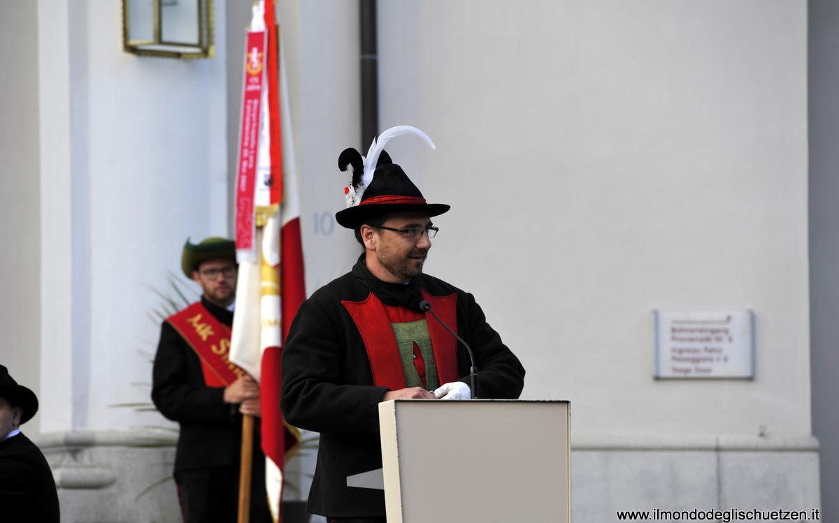 Bezugnehmend auf das Motto „In Vielfalt geeint“ spannte Bezirksmajor Andreas Leiter Reber in seiner Ansprache einen Bogen von der einstigen Eigenständigkeit Tirols zu den heutigen Kleinstaaten in Europa und meinte, dass wir noch nie in der Geschichte so viele und so angenehme Möglichkeiten wie heute hätten, uns für ein eigenständiges Tirol einzusetzen.