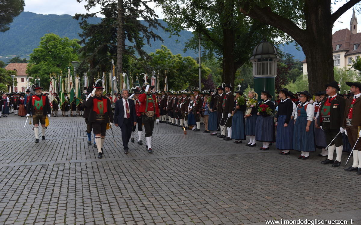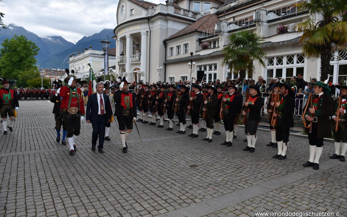 Zahlreiche Ehrengäste waren zum Bezirksschützenfest nach Meran gekommen, unter ihnen der Präsident der Bezirksgemeinschaft Burggrafenamt Alois Kröll, die Bürgermeister Walter Mairhofer, Othmar Unterkofler und Franz Pixner, die Landtagssbgeordneten Myriam Atz-Tammerle, Pius Leitner, Roland Tinkhauser und Sigmar Stocker, der Welschtiroler Landeskommandant Mjr. Paolo Dalpá,