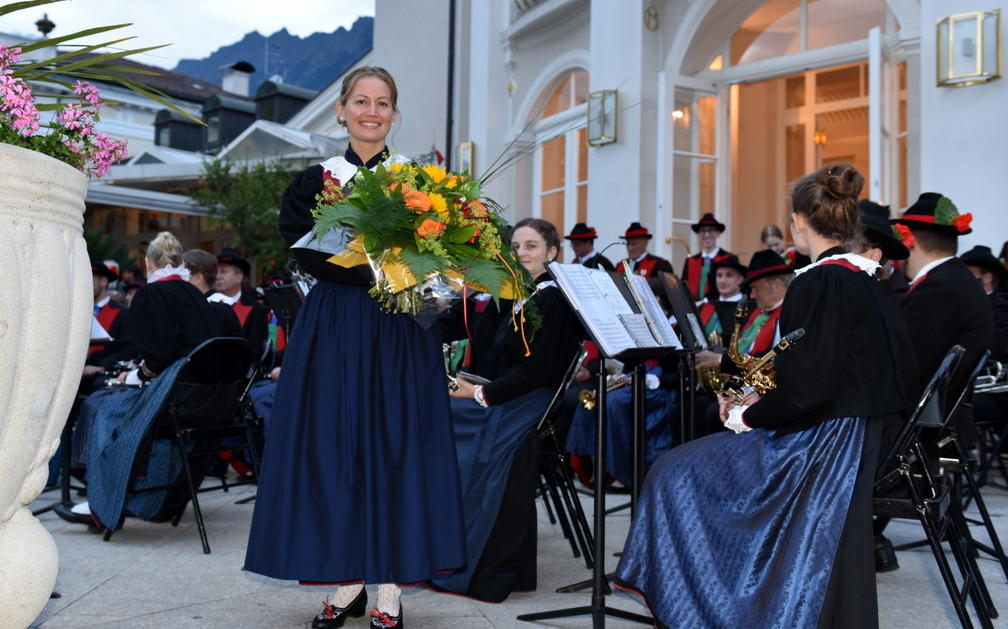 Im Mittelpunkt des Tiroler Zapfenstreichs standen dann die Musikkapellen Sinich-Freiberg und Gargazon unter der gemeinsamen Leitung von Kapellmeisterin Stefanie Menz, so wie die gemischte Ehrenformation des Schützenbezirks Burggrafenamt unter dem Kommando von Hauptmann Stefan Gutweniger. Komponist Florian Pedarnig, war es zwar nicht möglich, der Aufführung beizuwohnen, doch hat er es sich nicht nehmen lassen im Vorfeld an zwei Proben teilzunehmen, um mit den Musikanten letzte Feinheiten abklären zu können.