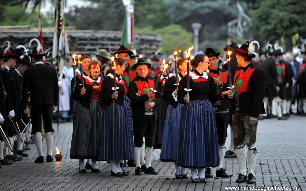 Peter Piock erklärte die Herkunft und die Zusammensetzung der Komposition „Tiroler Zapfenstreich – Festmusik der Schützen“, welche sich an das militärische Zeremoniell hält und in musikalischer Form eine Ausrückung der Tiroler Schützen beschreibt. Neben Trompetensignalen und dem Herz-Jesu-Bundeslied, beinhaltet die Komposition mehrere Tiroler Schwegelmärsche. Beim Motiv der „Feldmesse“ baute Bezirks- und Landeskurat Pater Christoph Waldner OT einige religiöse Gedanken ein und spendete den Segen, während die Ehrenformation zum „Totengedenken“ eine exakte Salve abfeuerte. Abgeschlossen wurde die Aufführung mit dem Einholen der Flagge und den Klängen des Tiroler Fackeltanzes, welcher von den Volkstanzgruppen Marling und Schenna ausgeführt wurde.