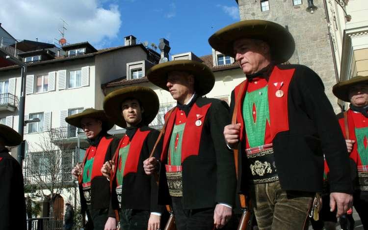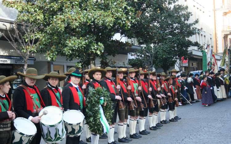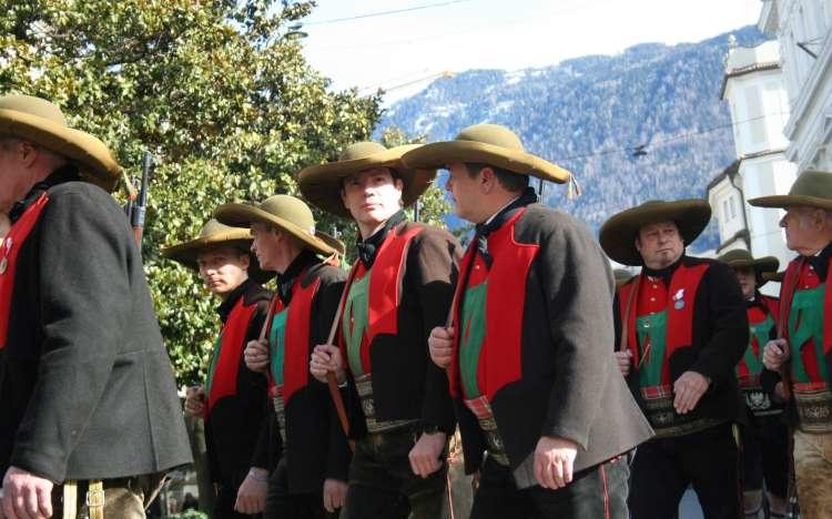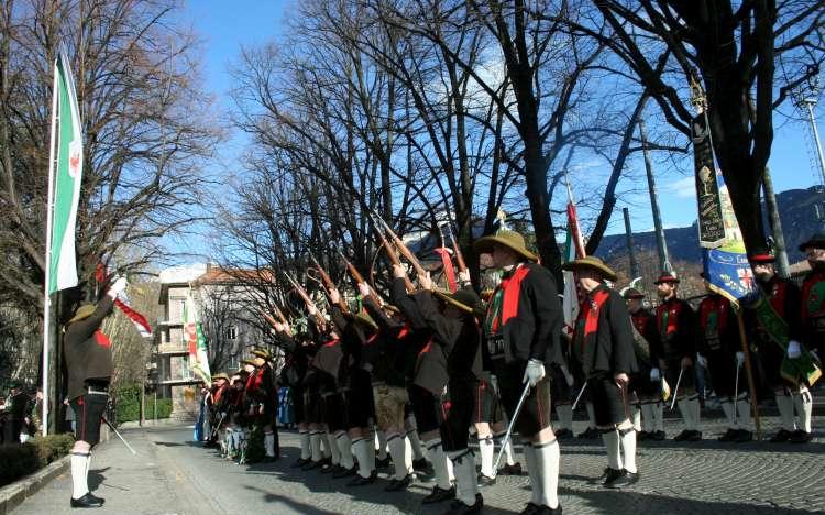 Zu Ehren des Allerhöchsten feuerte die Formation der Meraner Schützen eine perfekte Gewehrsalve ab.
