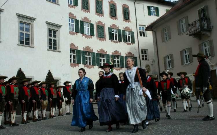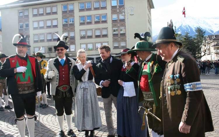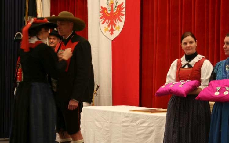 Beim Rückmarsch vom „Andreas Hofer-Denkmal“ erfolgte vor dem Meraner Bürgersaal eine Kommandoübergabe der Formation von Hauptmann Renato des Dorides an Oberleutnant Christian Minonne sowie der Austritt der Marketenderinnen zum Dienst im „Alten Meraner Kurmittelhaus“, wo die Ehrungen für verdiente Mitglieder und Persönlichkeiten vorgenommen wurden.