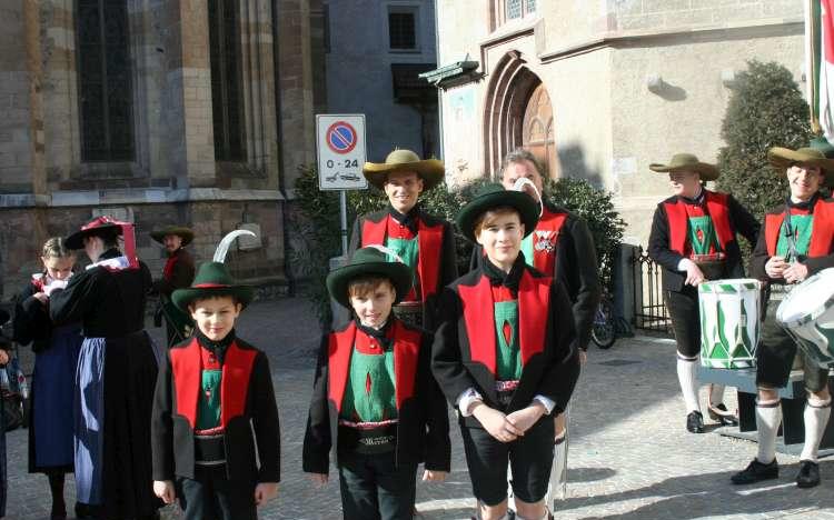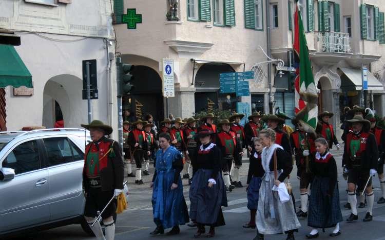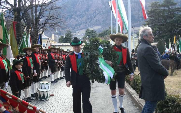 Nachdem die Schützenkompanie Meran eine exakte Ehrensalve zum „Guten Kameraden“ abgefeuert hatte, wurden für die gefallenen Freiheitskämpfer Kränze niedergelegt. Musikalisch gestaltet wurde die Feier von der Musikkapelle St. Walburg.