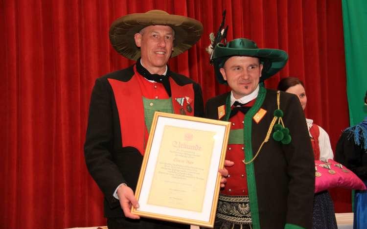 Unser Kamerad Elmar Rier wurde vom Südtiroler Schützenbund mit der Verdienstmedaille in Bronze ausgezeichnet. Die Laudatio zu Ehren von Elmar hielt Bezirksmajor Stefan Gutweniger.