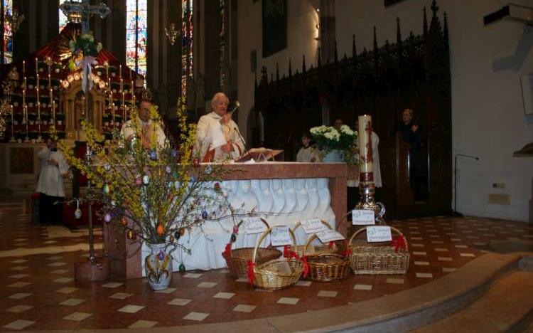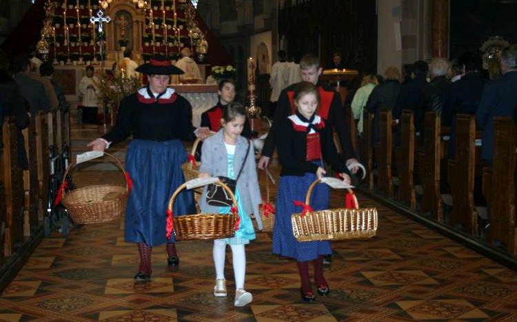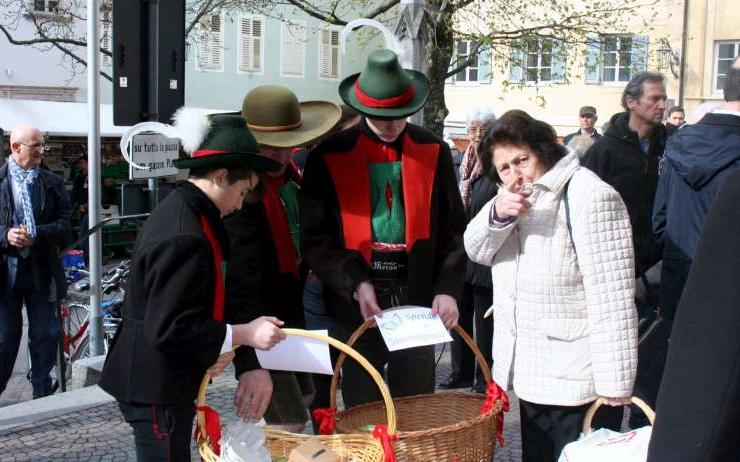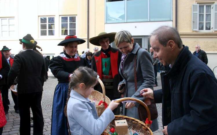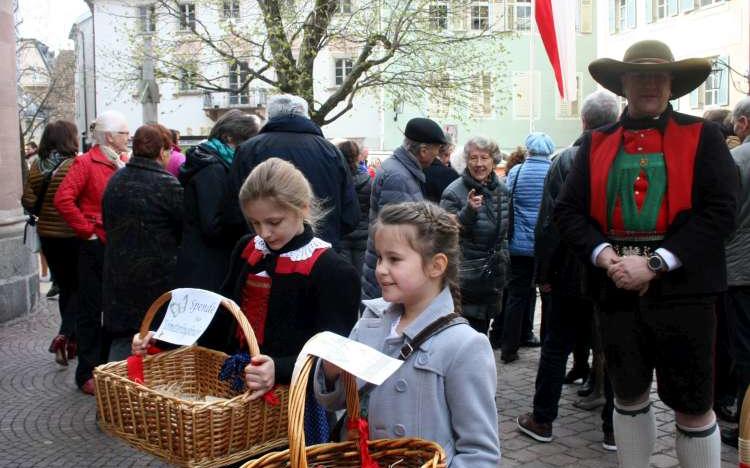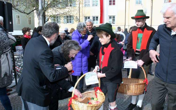 Dekan i. R. Albert Schönthaler, der das Oster-Hochamt zelebrierte, informierte vor Erteilung des Segens die Gläubigen über das lobenswerte Vorhaben der Meraner Jungschützen. Stolz und in Schützentracht überreichten dann die Kinder vor den Kircheneingängen den Besuchern die Ostereier mit der Bitte um eine freiwillige Spende. Auch am diesjährigen Osterfest wurde diese Aktion von der Pfarrgemeinde mit Freude angenommen.
