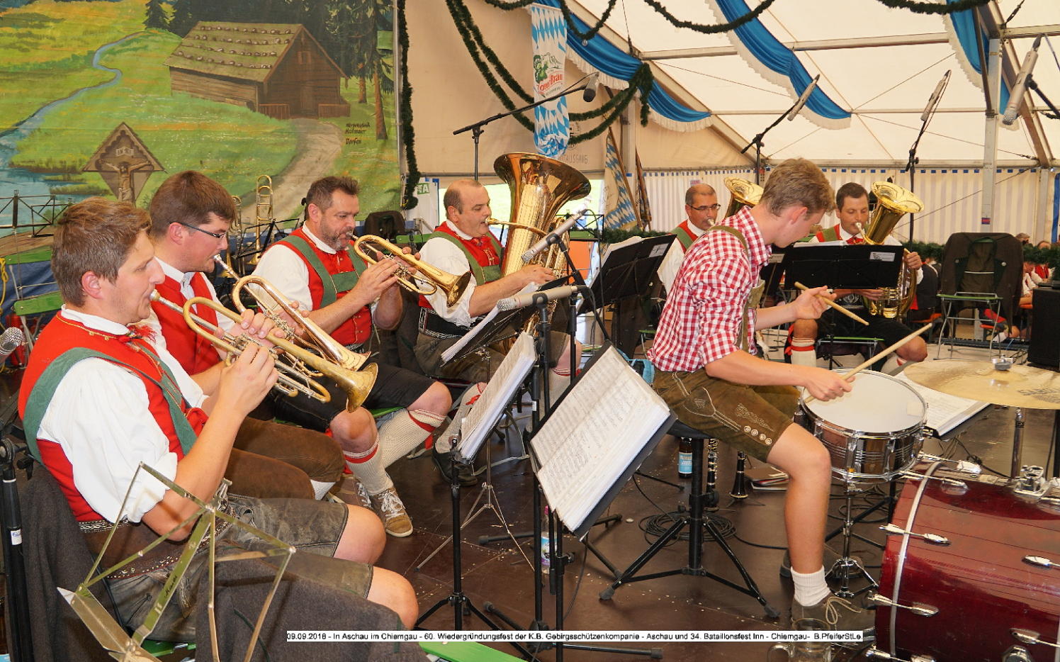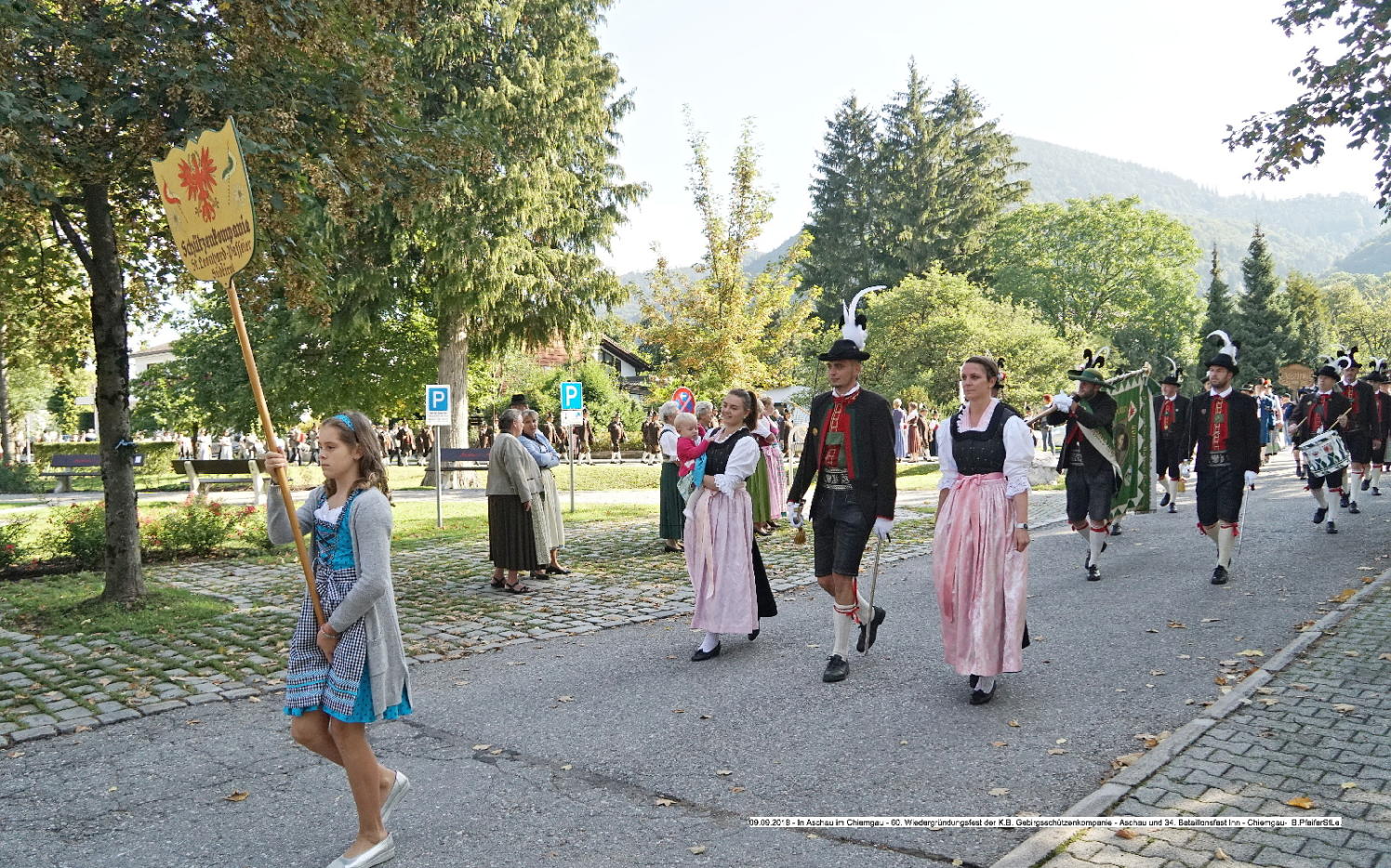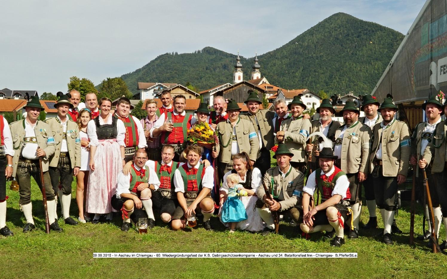 Schützen der SK Andreas Hofer – St. Leonhard und der SK Major Georg Klotz – Walten sowie Musikanten der MK Andreas Hofer – St. Leonhard und der MK Walten feierten mit der Königlich-Bayrischen Gebirgsschützenkompanie Aschau im Chiemgau ihr 60 jähriges Wiedergründungsfest. Gleichzeitig trafen sich die Schützen der Alpenregion zum 34. Bataillonsfest Inn – Chiemgau.