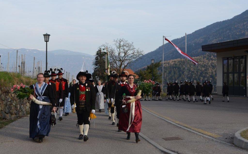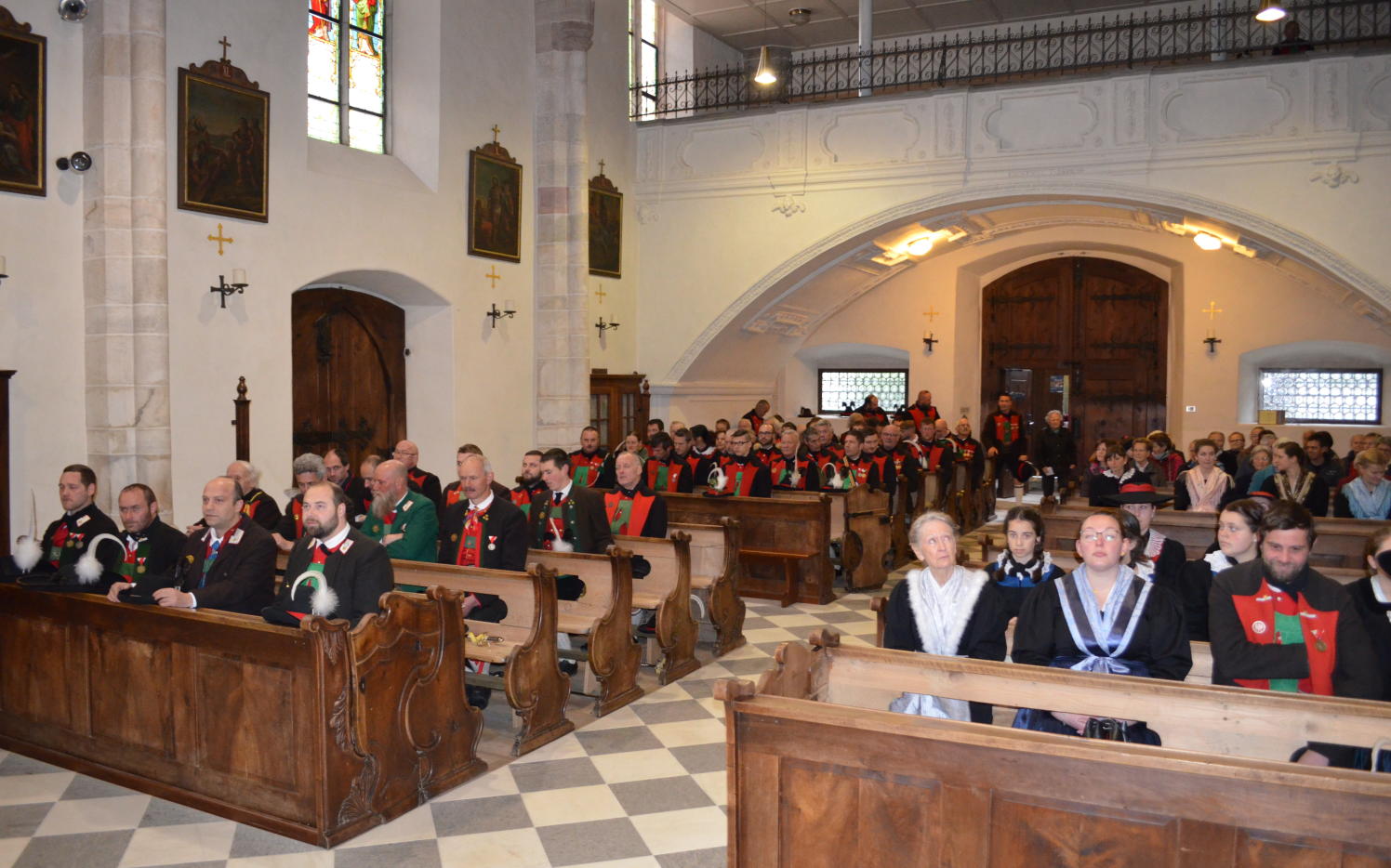 Der Bezirkstag fand in diesem Jahr am Samstag, 9. März, in Partschins statt. Zunächst zelebrierte Schützen-Landeskurat P. Christoph Waldner OT gemeinsam mit Pfarrer Josef Schwienbacher einen Gottesdienst in der Partschinser Pfarrkirche. Anschließend trafen sich alle Schützen und Marketenderinnen im Haus der Dorfgemeinschaft, wo sie Bezirksmajor Hannes Holzner alle herzlich begrüßte. Das Motto, unter welches die Tagung diesmal gestellt war, war „Aufbruch“. „Aufbruch ist ein zusammenfassendes Wort, das vielseitig einsetzbar ist“, erläuterte Holzner. Unter anderem, weil im vergangenen Jahr in den Bezirken Neuwahlen durchgeführt wurden und ein großer Wechsel in den meisten Bezirksgremien vollzogen wurde. Andererseits müsse dieses Wort auch ein Aufruf an alle sein, sich gegen die Ungerechtigkeiten im italienischen Staat aufzulehnen, erklärte der Bezirksmajor, denn es sei bereits „5 nach 12“.