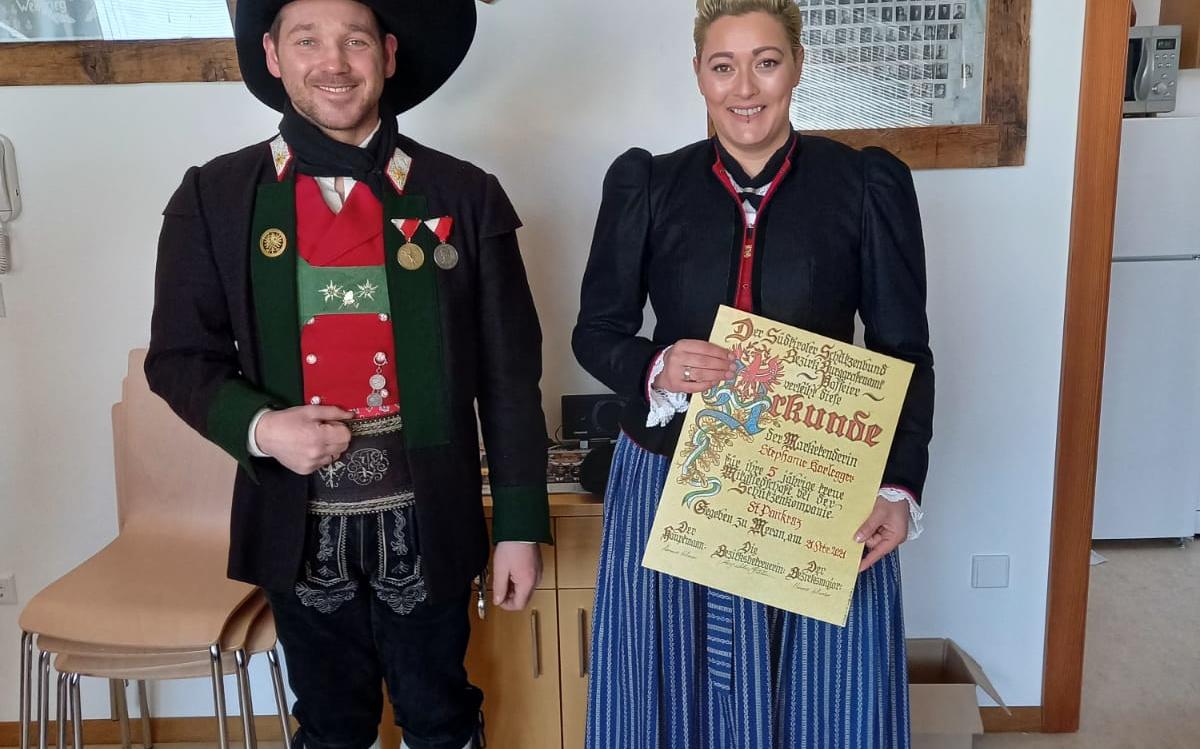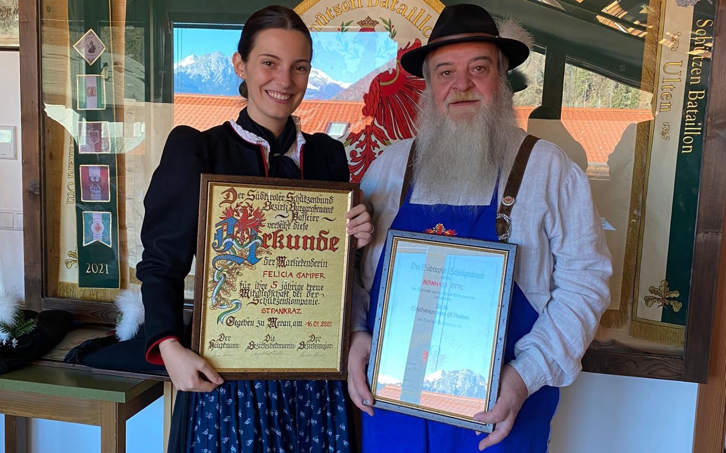 Bei der heurigen Jahreshauptversammlung wurde unsere Marketenderin Felicia Gamper für 5 Jahre treue Mitgliedschaft geehrt, Kassier und unterstützendes Mitglied Bernhard Öttl erhielt den Ehrenkranz der Schützenkompanie für seine Verdienste und seinen Einsatz in den letzten 13 Jahren. Hier möchten wir den zu Ehrenden nochmals danken und wir freuen uns auf viele weiter Jahre mit ihnen.