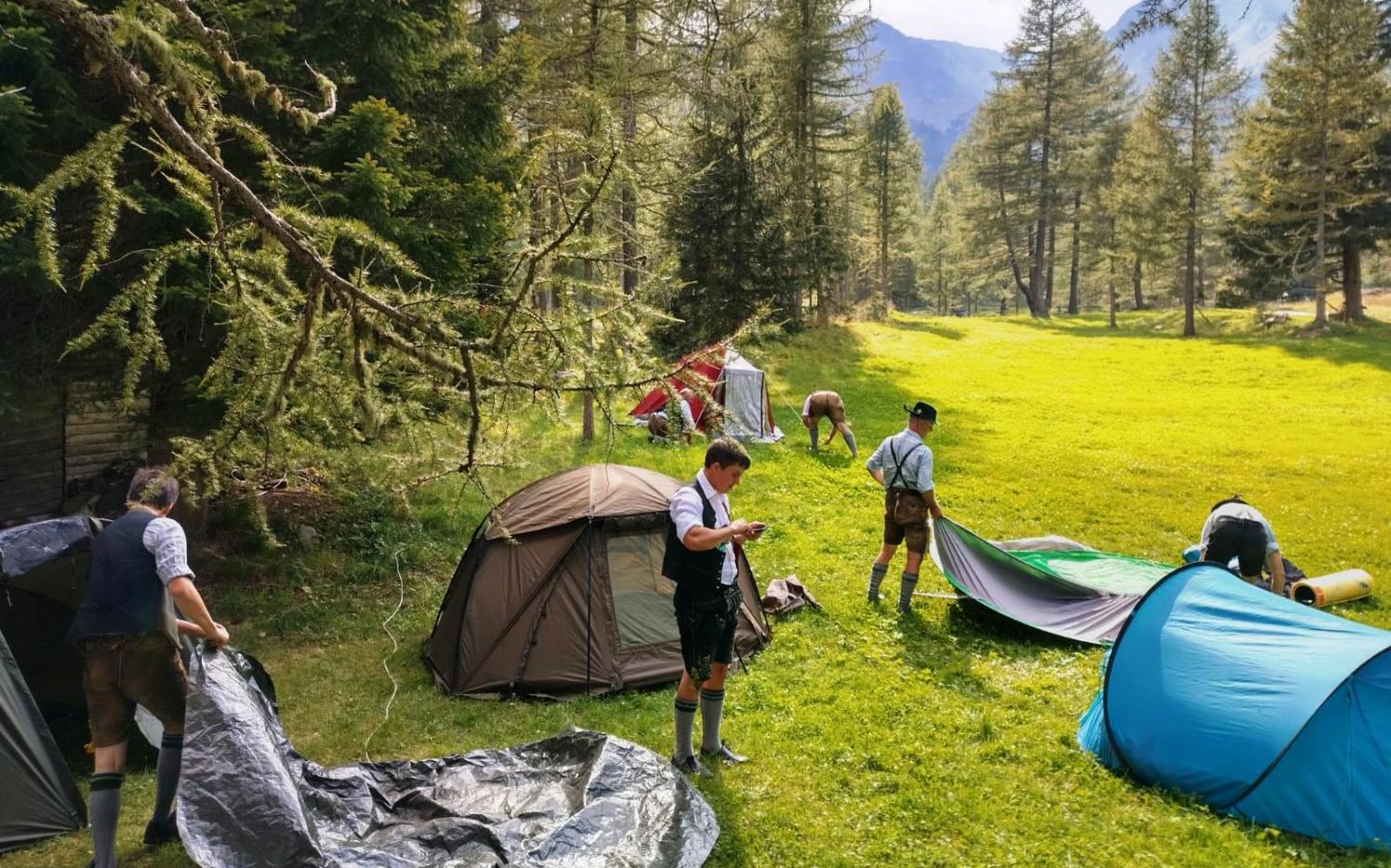 BAYERN/BURGSTALL/ULTEN – Bereits seit über 40 Jahren pflegt die Schützenkompanie „Graf Volkmar von Burgstall“ eine enge Freundschaft mit der Gebirgsschützenkompanie Neubeuern. Damit dies auch in Zukunft so bleiben soll, organisierten die Burgstaller Schützen einen Zeltausflug für alle jungen und junggebliebenen Mitglieder beider Kompanien. Gesagt, getan! Ende August machten sich mehrere Fahrzeuge von Bayern, auf in Richtung Burggrafenamt. Nach der Ankunft in Burgstall trat man die gemeinsame Reise nach Ulten, genauer zur Kuppelwieser Alm an. Nach dem Aufstellen der Zelte, gab es für alle eine kleine Stärkung. Den Samstagnachmittag über verbrachte man bei diversen Spielen, ehe man nach dem Abendbrot ein Lagerfeuer entzündete. Bei Musik und Gesang wurde bis tief in die Nacht gefeiert. Tags darauf, am Sonntag, spazierte man gemeinsam zur nahegelegenen Almhütte der Kuppelwieser Alm, währenddessen einige fleißige Mitglieder das Mittagessen vorbereiteten. Zum Sonntagsgrillen reisten noch die restlichen Marketenderinnen, Schützen und unterstützenden Mitglieder unserer Kompanie an. Bei Speiß, Trank und guter Unterhaltung ließ man den Nachmittag ausklingen ehe unsere Gäste die Heimreise nach Bayern antreten musste. Fazit: Wiederholungbedürftig! Ein großer Dank gilt allen fleißigen Helfern welche zum Gelingen beigetragen haben!