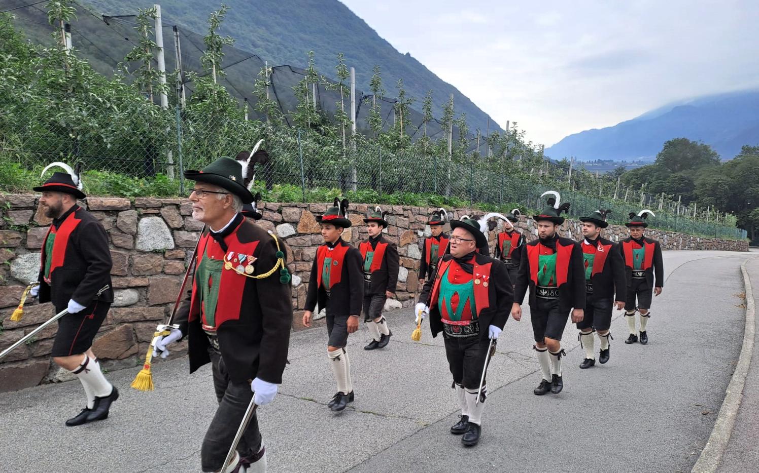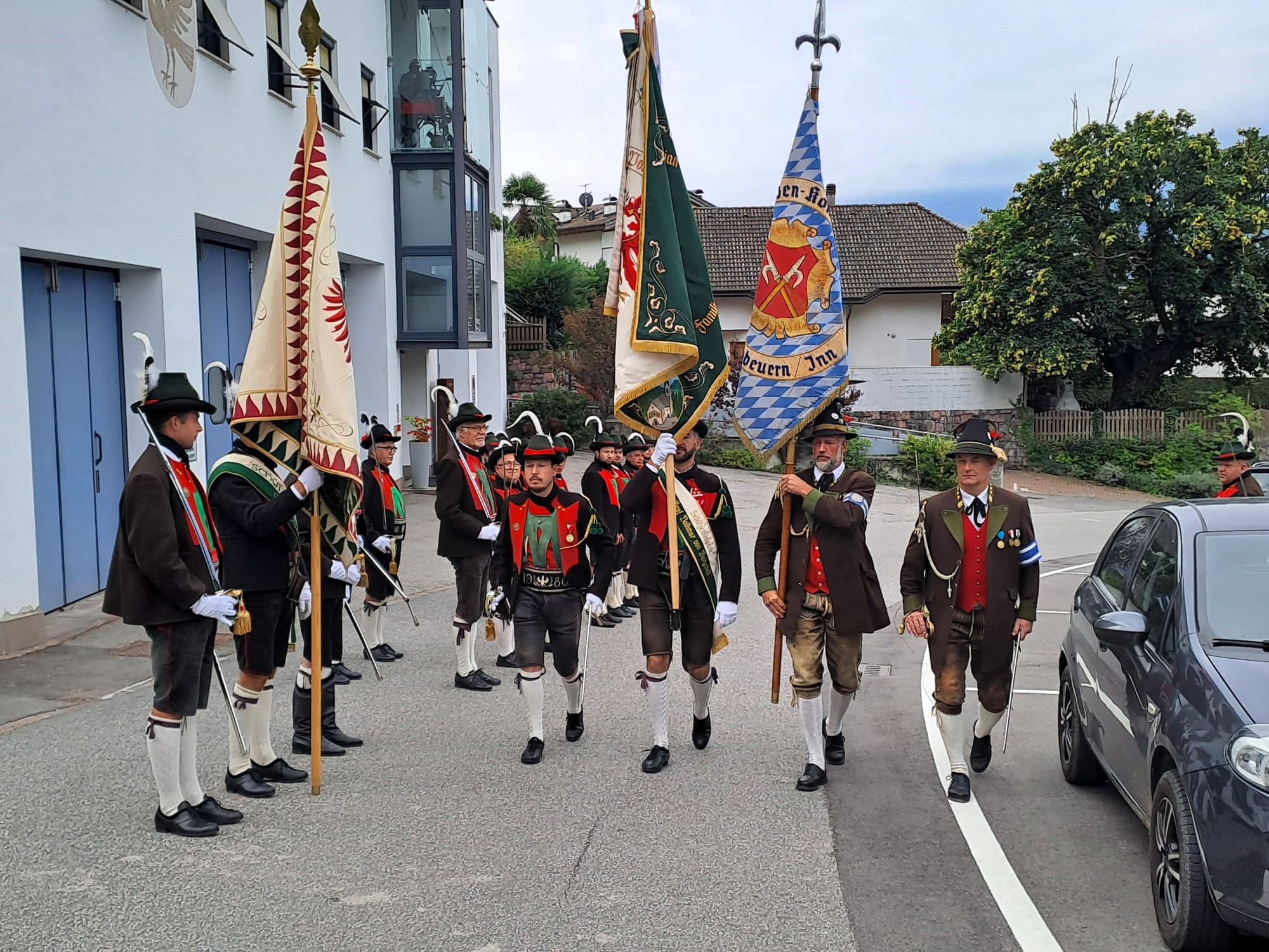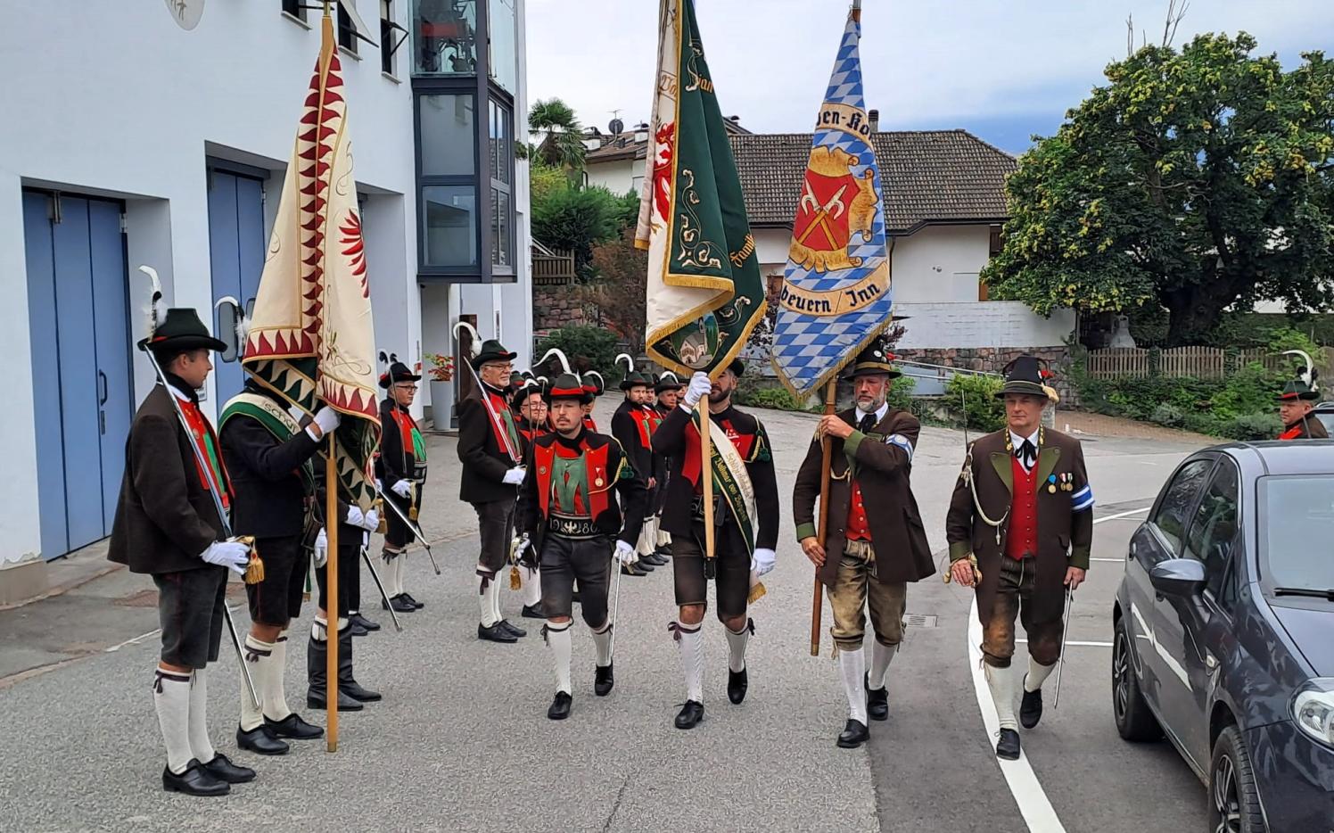 BURGSTALL – Alljährlich, mitten im September findet der traditionelle Burgstaller Kirchtag statt. Heuer beging man das Patronatsfest am Sonntag, 17. September (das Patrozinium unserer Pfarrkirche ist das Hochfest der Kreuzerhöhung am 14. September). Bereits früh morgens versammelten sich die Musikkapelle Burgstall, die zahlreichen Schützenabordnungen und eine Abordnung unserer Partnerkompanie aus Neubeuern unterhalb des Kindergartengebäudes. Mit der Gebirgsschützenkompanie aus Neubeuern (Bayern), welche von Hauptmann Josef Stadler angeführt wurde, pflegt man bereits seit vier Jahrzehnten eine enge Freundschaft.