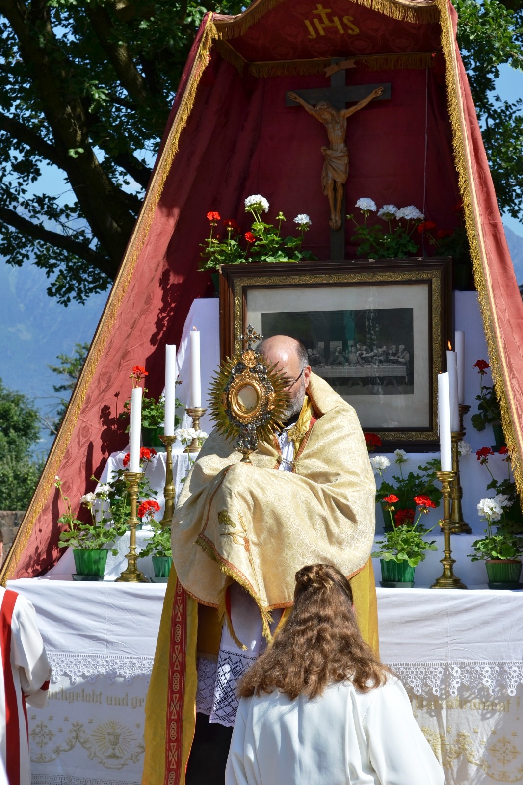 Sonntags darauf fand dann die Fronleichnamsfeier in Burgstall statt, welche von Pater Christoph Waldner OT feierlich zelebriert wurde. Die Musikkapelle Burgstall umrahmte die Feier musikalisch. Auch wurden wieder Statuen und Fahnen mitgetragen. Nach dem Evangelium feuerte die Schützenkompanie eine exakte Ehrensalve ab. Die Feierlichkeiten klangen mit einem kleinen Umtrunk am Kirchplatz aus.