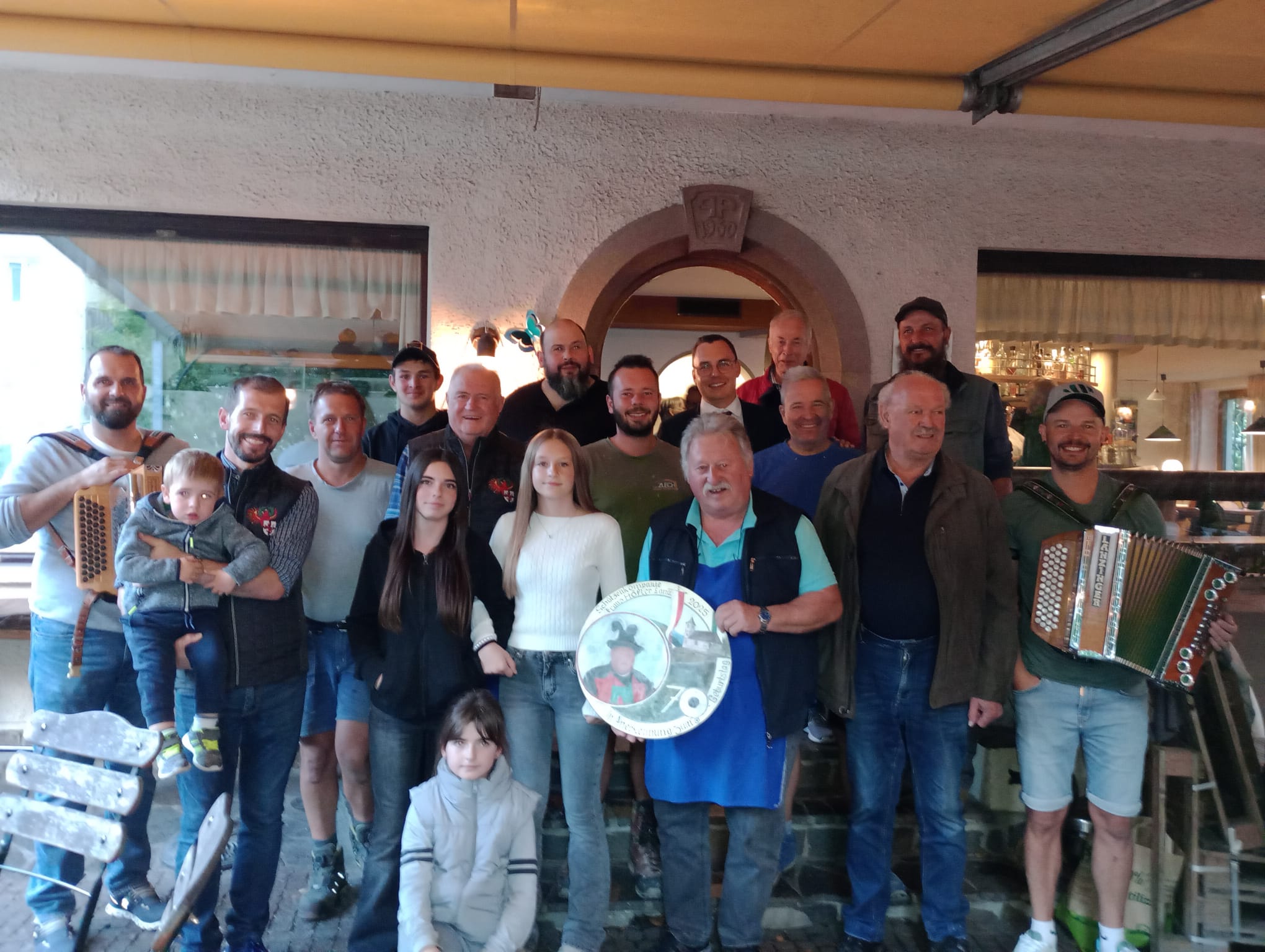 In gemütlicher Runde wurde auf das Jubiläum angestoßen und auf viele gemeinsame Erlebnisse und Stunden innerhalb der Kompanie zurückgeblickt. Die Schützen dankten Karl für seine langjährige Treue und Verbundenheit zur Kompanie, überreichten Ihm eine handbemalte Schießscheibe mit seinem Abbild und wünschten ihm weiterhin Gesundheit, Glück und Gottes Segen.