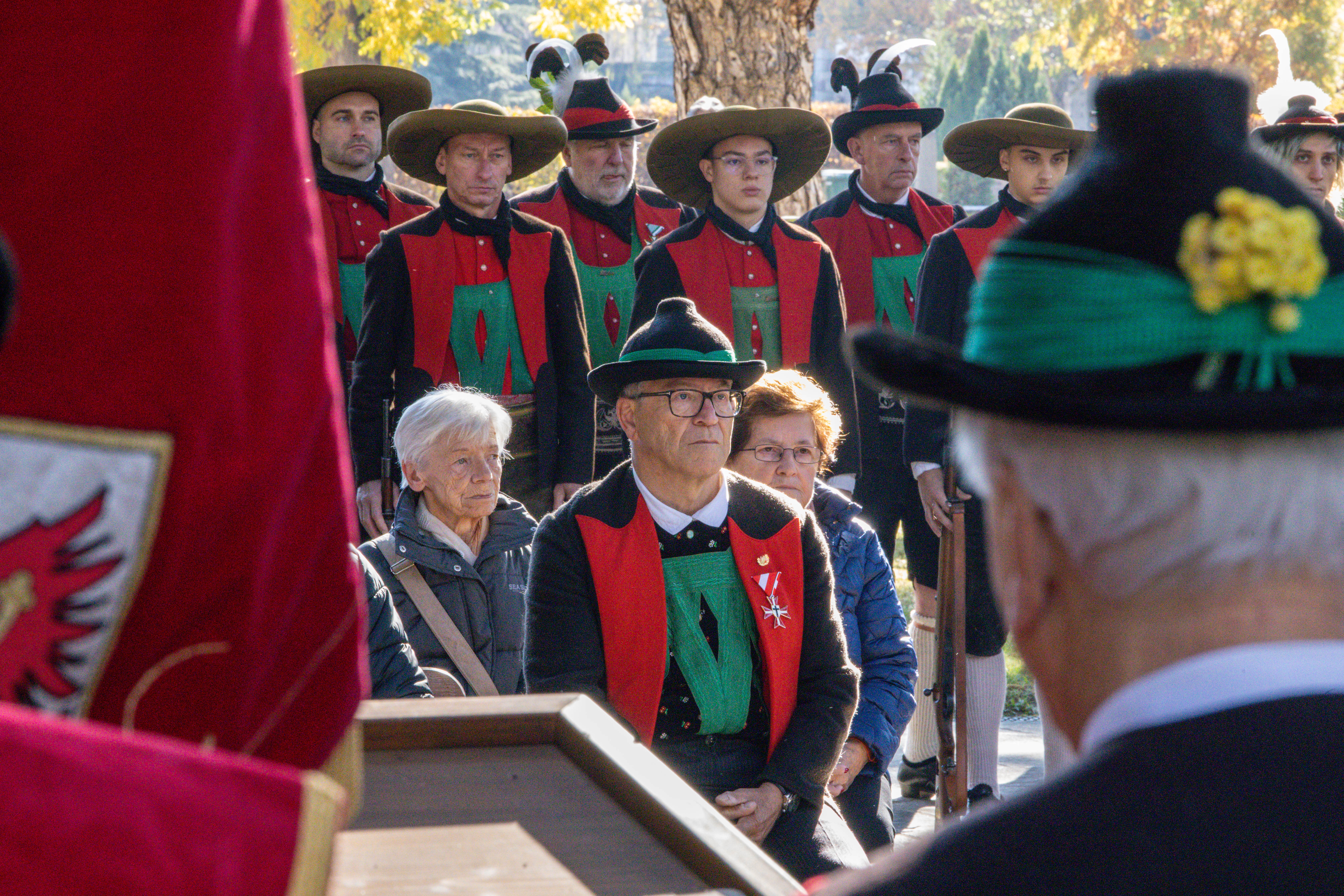 Nach der Heiligen Messe, zelebriert von Altdekan Albert Schönthaler, begrüßte Obmann Herbert Tschimben die zahlreichen Ehrengäste, darunter Bürgermeisterin Katharina Zeller, die Gemeinderäte Stefan Frötscher und Christoph Mitterhofer, Vertreter verschiedener Vereine, den Schützenbezirk Burggrafenamt Passeier sowie alle weiteren Besucherinnen und Besucher, die gekommen waren, um der Gefallenen zu gedenken.