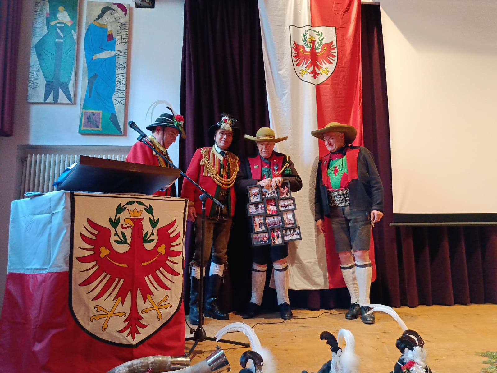 Einheimische und Schaulustige erwarteten bereits nach dem Gottesdienst am Oberen Pfarrplatz die Formationen der Meraner Schützen mit ihren Fahnenabordnungen aus dem historischen Tirol, die wie gewohnt Aufstellung zum Festakt nahmen. Mit dabei als Ehrengäste: Merans Bürgermeisterin Dr. Katharina Zeller, Stadtrat Christoph Mitterhofer, der Obmann des A.Hofer Bundes Hermann Unterkircher sowie Vertreter von Kirche und ehrenamtlicher Vereine. Umrahmt durch den Musikeinsatz von Musikanten der Bürgerkapelle Obermais wurde traditionell von den Meraner Schützen ein Ehrensalutschuss für verstorbene Mitglieder der Kompanie abgefeuert. Thomas, Wirt vom Lokal „Luisl`s Keller“ am Pfarrplatz Meran spendierte den Meraner Schützen erneut eine Fahne für den Pulverturm, die bei einer „Schnapsl- Ausgabe“ feierlich entgegengenommen wurde. Im Nikolaussaal wurden den Gästen bei einem festlichen Essen Bilder von Veranstaltungen und Ausrückungen der Meraner Schützen vom vergangenen Jahr präsentiert. Leutnant Patrick Mitterhofer nahm die Ehrung für seine 20 jährige Zugehörigkeit mit Urkunde und goldenem Ehrenzeichen entgegen. Ebenso wurden Jungschützen der Meraner Kompanie für erfolgreiche Teilnahme an Wettbewerben belobigt und ihnen für eine Spendenaktion für eine in Not geratene Familie gedankt. Alt- Dekan Albert Schönthaler übernahm das Tischgebet, Dekan Mario Gretter, Bürgermeisterin Katharina Zeller und Altbürgermeister der Stadt Meran Günther Januth überbrachten Grußworte an Schützen und die zahlreichen Gäste. Ein spezieller Schützen-Dank ging an die Laurin Stiftung, vertreten durch ihren Mitarbeiter Walter Stirner, der sich erfolgreich für eine großzügige Spende der Stiftung zur Beschaffung von neuen Schützentrachten für die Kompanie einsetzen konnte. Renato des Dorides, Hauptmann der Meraner Schützen, verabschiedete sich nach 25 Jahren Aktivitäten im Schützenwesen und bedankte sich bei Freunden und Kameraden der Kompanie für die Arbeit im Gremium der Kommandantschaft, der Referenten, bei allen Schützenkameraden, Jungschützen und Marketenderinnen für die langjährige Zusammenarbeit.