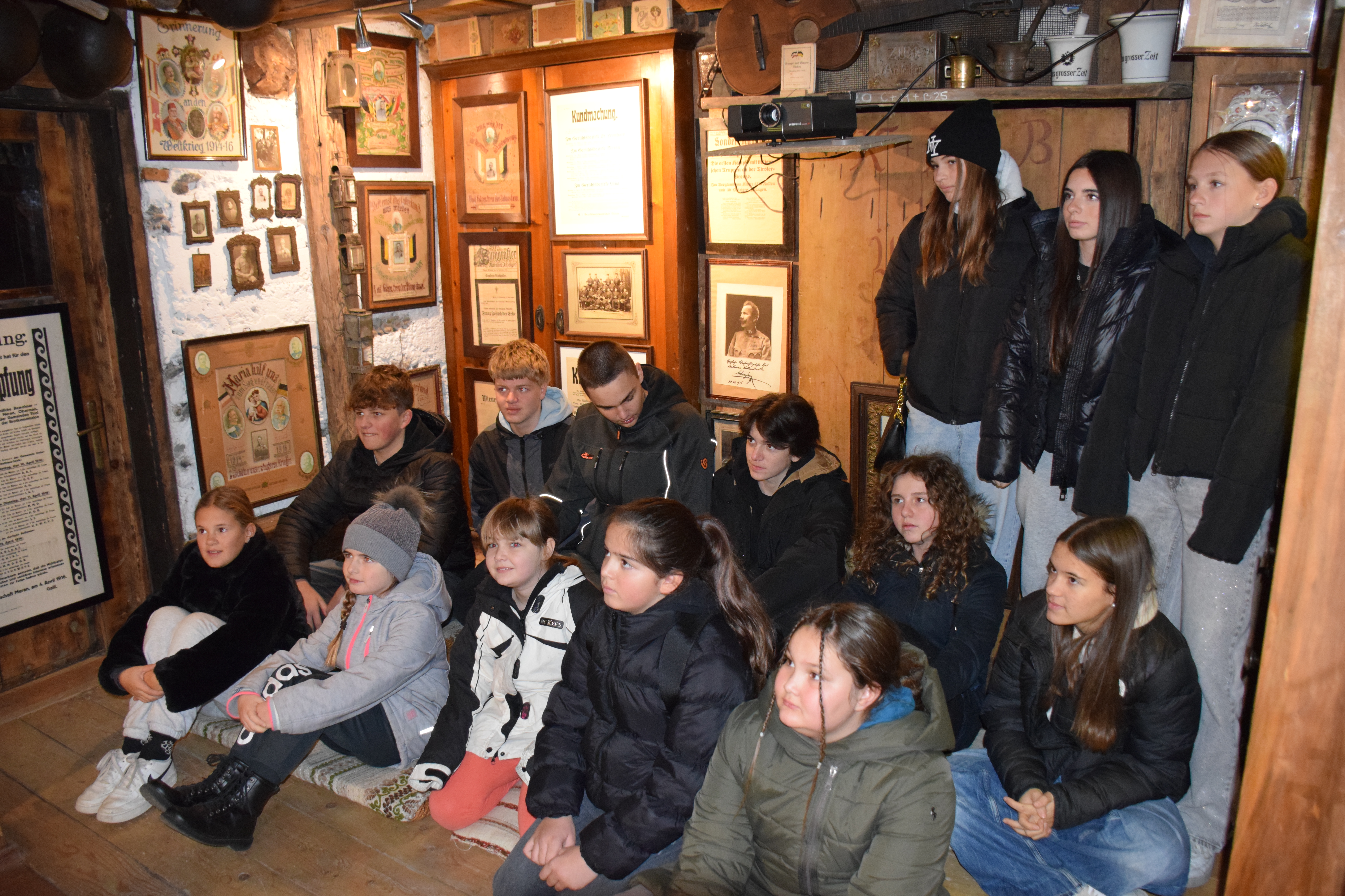 Mitte Dezember stand ein weiterer, besonders lehrreicher Vormittag auf dem Programm. Auf Einladung von Alexander Schwabl trafen sich die Jungschützen beim Kleinen Museum in Lana. Bereits beim Betreten war spürbar, mit wie viel Leidenschaft und Hingabe dieses Museum geführt wird. Alexander gewährte spannende Einblicke in seine private Sammlung – von Ausrüstungsgegenständen und Uniformen über Essensdosen bis hin zu vielen weiteren Zeitzeugen vergangener Tage.