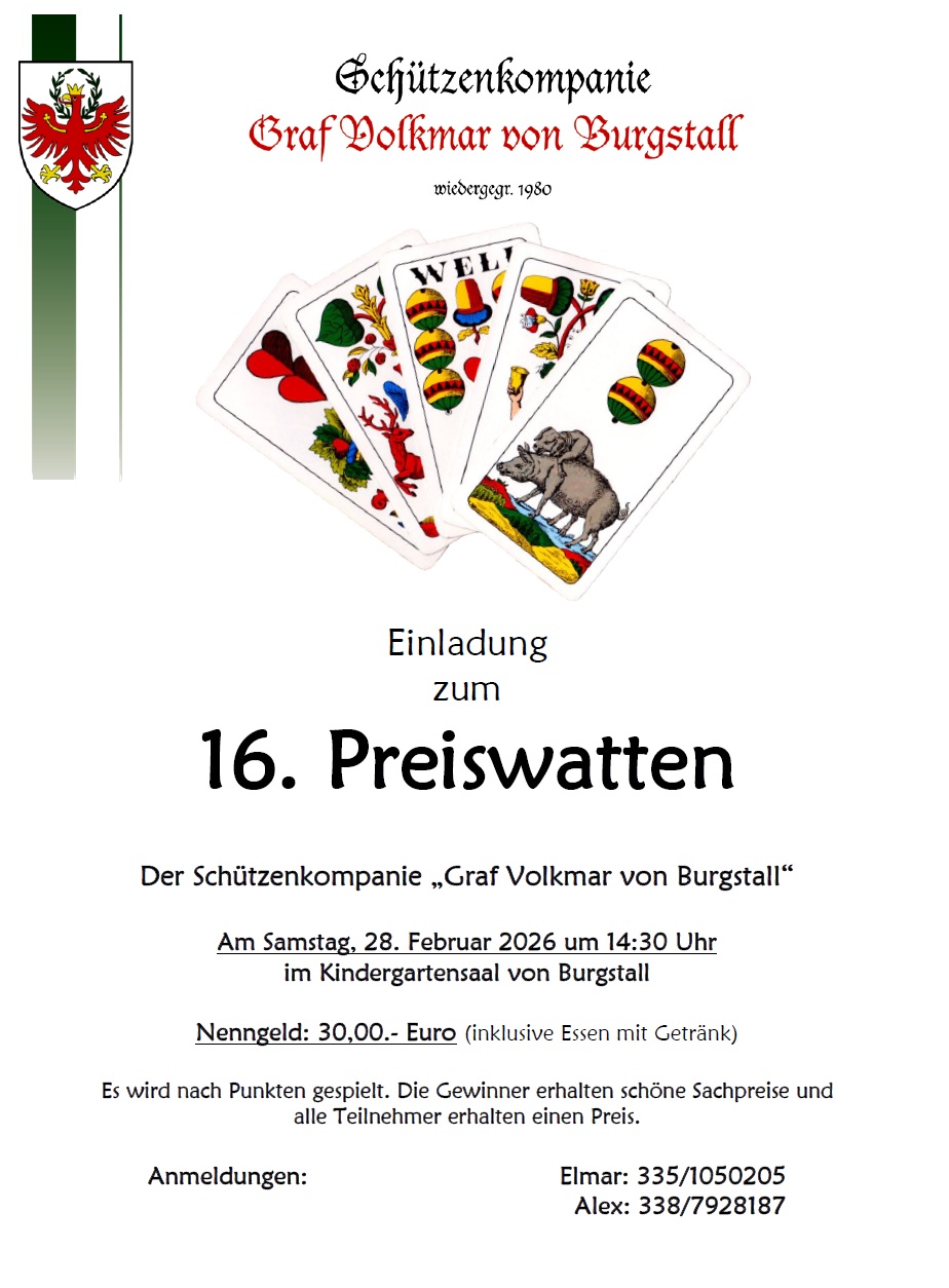 BURGSTALL - 10. Preiswatten der Schützenkompanie