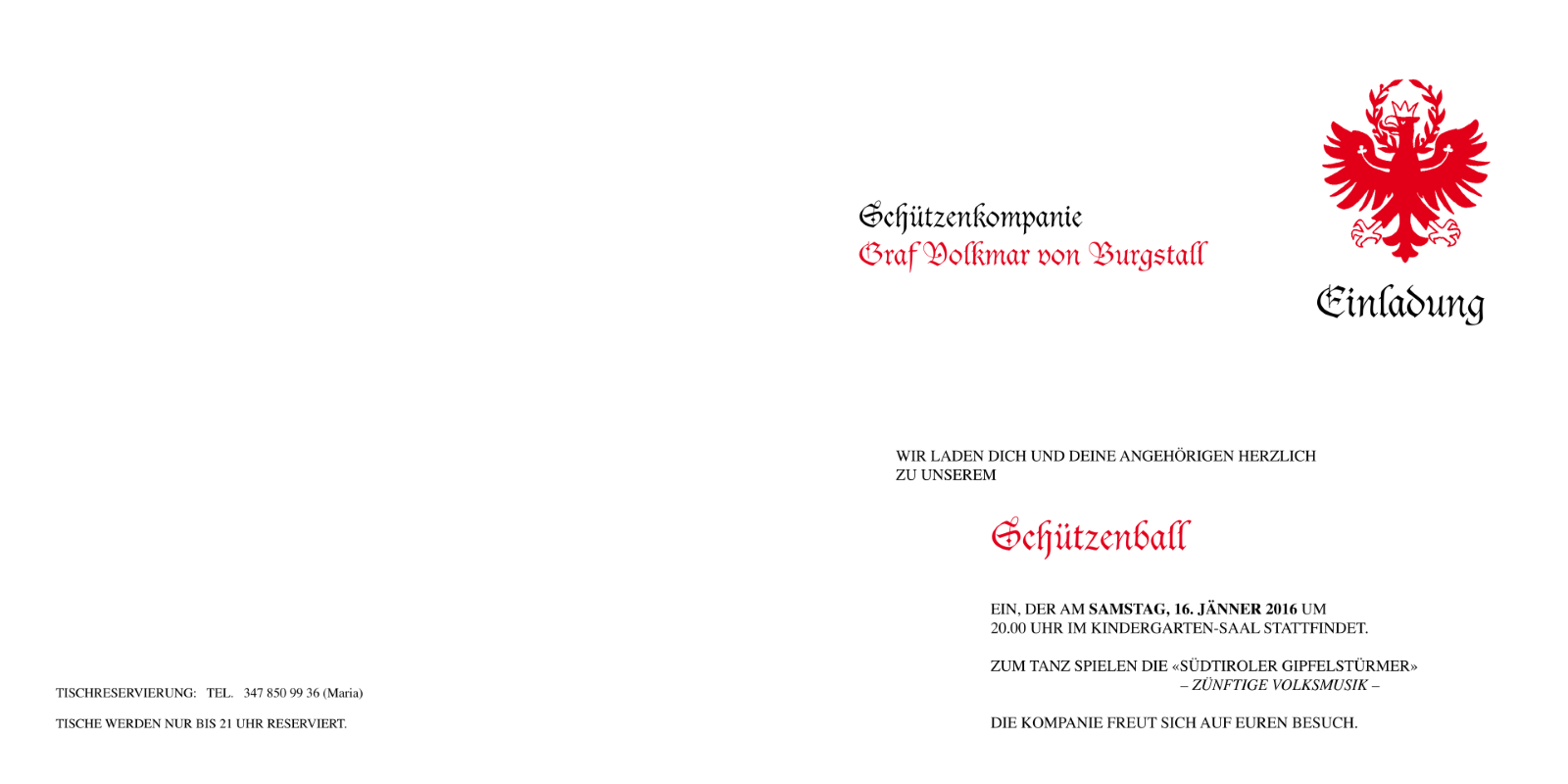 Die Schützenkompanie Burgstall lädt am 16. Jänner 2016 wieder zum traditionellen Schützenball ein!